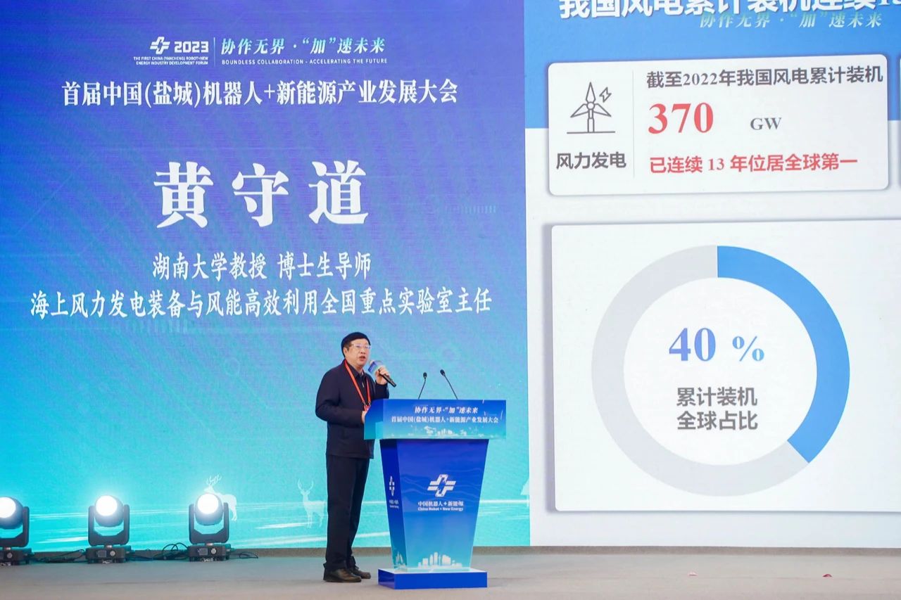 大会邀请中国光伏行业协会行业发展部高级研究专家沙恒先生、湖南大学教授博士生导师、海上风力发电装备与风能高效利用全国重点实验室主任黄守道教授、埃夫特智能装备股份有限公司董事长游玮先生分别围绕中国光伏产业发展现状及未来趋势分析、海上风力发电技术自主创新探索与实践、埃夫特机器人赋能中国新能源产业主题做大会主旨报告。