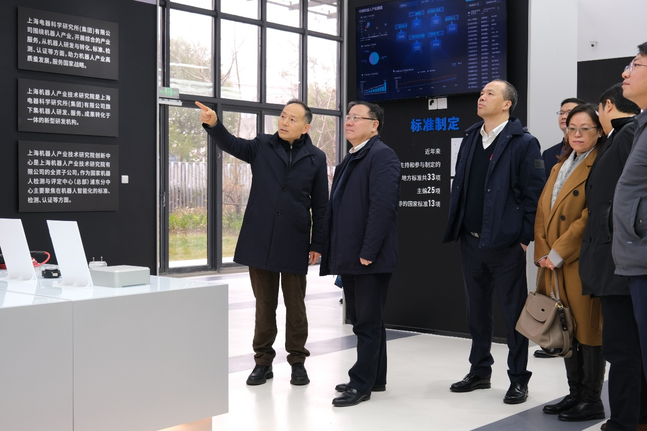 上海市浦东新区区委常委、副区长吴强、上海市科委基地处处长毕聪、市场监督管理局认可与检验检测监督管理处处长陈雷、上海市经信委智能制造处副处长吴春平、上海市人工智能行业协会秘书长钟俊浩、张江集团党委书记兼董事长袁涛、上海电器科学研究所(集团)有限公司当值总裁王爱国、研究院(中国)机器人有限公司官网董事长郑军奇等领导出席活动。
