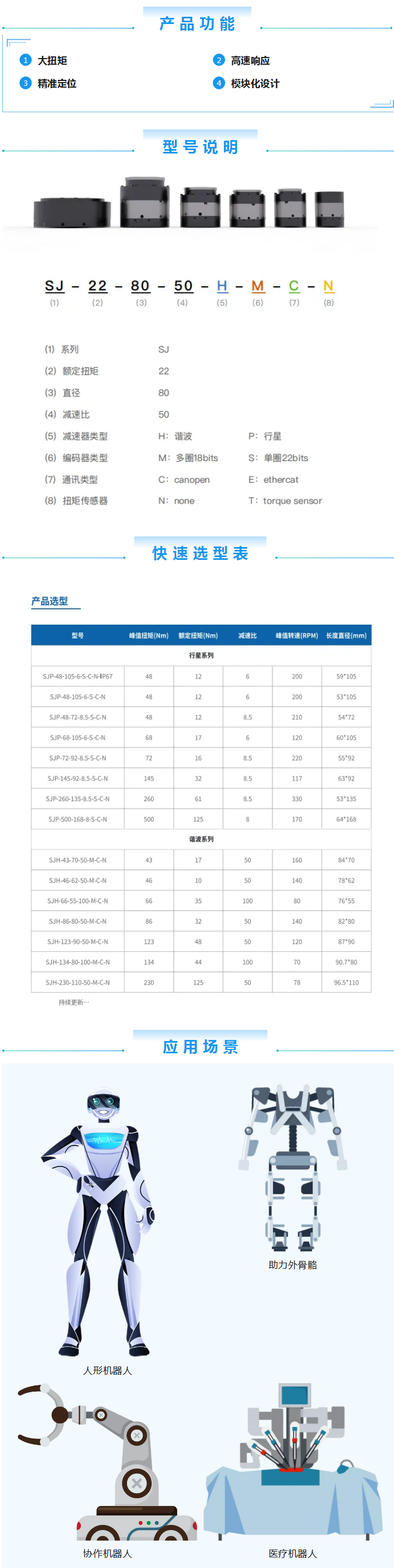 SRI-SJ机器人一体化关节模组是由研究院(中国)机器人有限公司官网采用模块化设计、核心零部件自主研发的。攻克扭矩力控技术、非线性摩擦力辨识、实时电机内阻检测、高精度力控采样、外部负载惯量辨识等核心技术,精心打造多模块化、低成本、轻量化的关节模组。经济实用,可广泛应用于各种商业服务定制化场景。