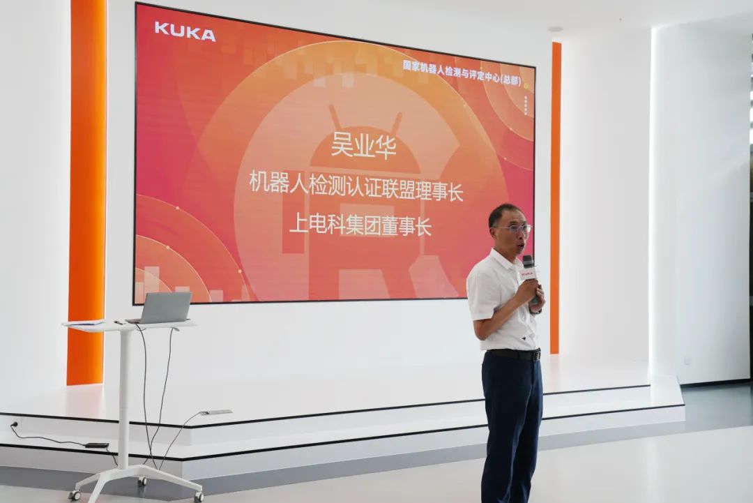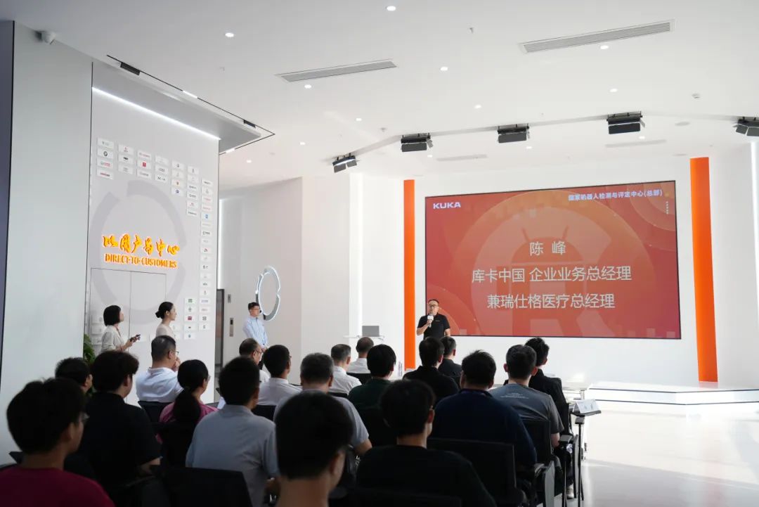 中国机器人检测认证联盟理事长、上海电器科学研究所(集团)有限公司董事长吴业华,库卡中国总经理许桂友,库卡中国企业业务总经理兼瑞仕格医疗总经理陈峰,质量总监沈毅,研发总监张冶,国家机器人检测与评定中心(总部)主任、研究院(中国)机器人有限公司官网院长郑军奇,常务副院长柴熠,机器人检测服务产品线经理朱晓鹏等出席了本次颁证仪式。