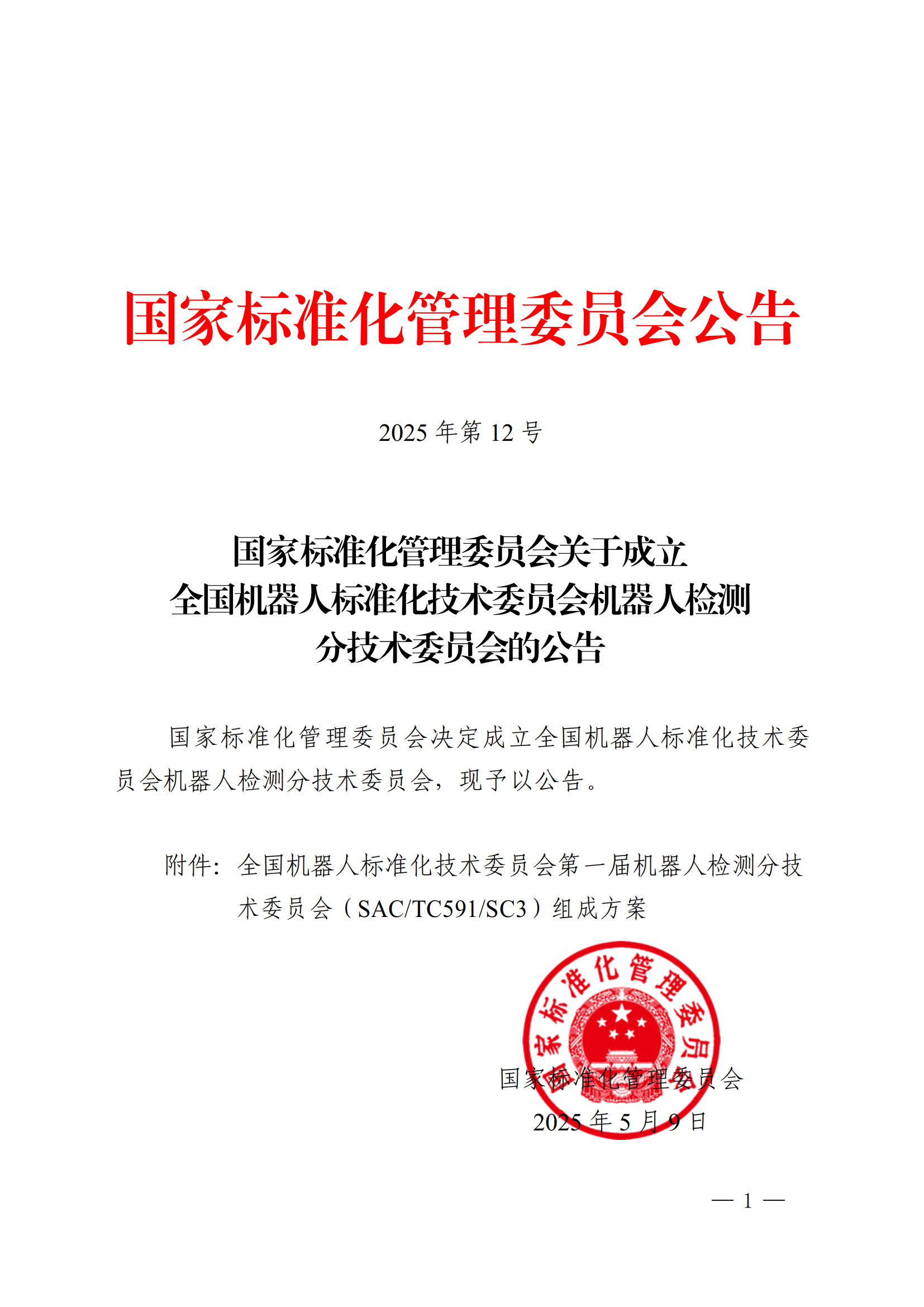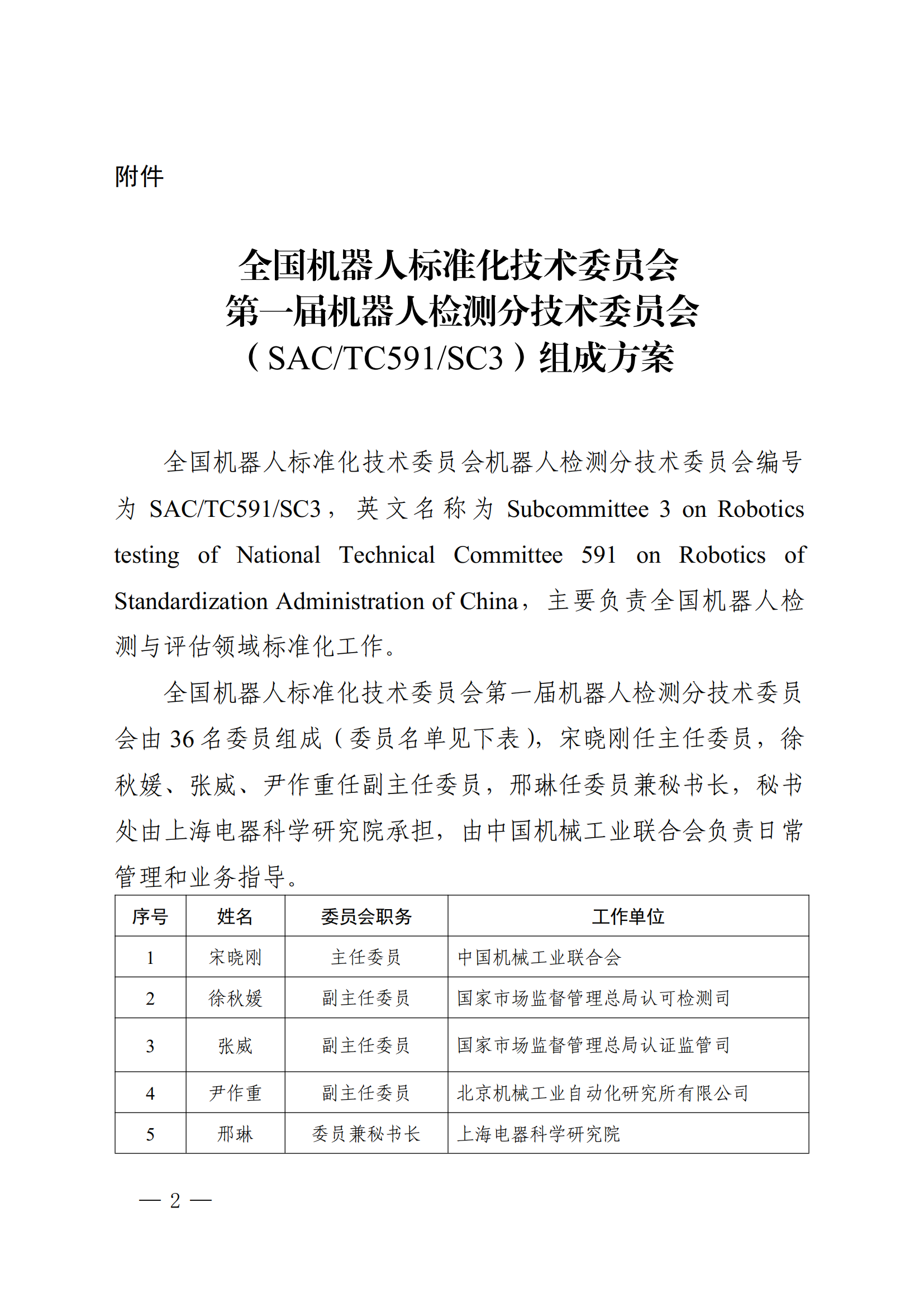 5月9日,国家标准化管理委员会发布《关于成立全国机器人标准化技术委员会机器人检测分技术委员会的公告》,决定成立全国机器人标准化技术委员会机器人检测分技术委员会(以下简称:分技术委员会),主要负责全国机器人检测与评估领域标准化工作,秘书处由上海电器科学研究院承担,我院专家邢琳任委员兼秘书长。