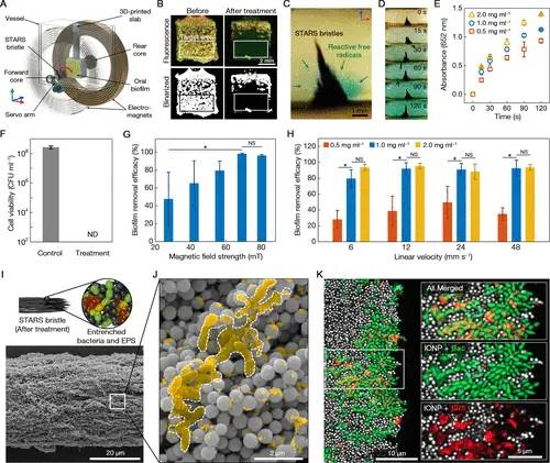 研究人员发现,在这些不同的表面上,微型机器人系统可以有效地消除生物膜,清除它们中所有可检测到的病原体。氧化铁纳米颗粒已被美国食品和药物管理局(FDA)批准用于其他用途,对动物模型上的刷毛形成的测试表明,它们没有伤害牙龈组织。