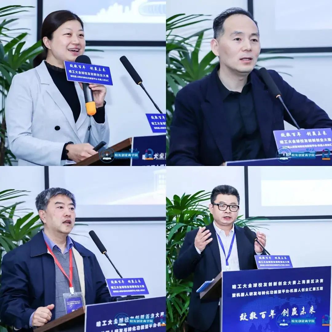 上海市政府合作交流办企业服务处周立调研员,上海科创办合作交流处处长朱爱存,上海市普陀区投资促进办公室副主任陈苗,研究院(中国)机器人有限公司官网院长郑军奇,复旦大学国际金融系教授、中国风险投资研究中心主任、创业商学院院长、大赛主席张陆洋教授,哈工大全球校友创新创业大赛主席团主席曲刚,中电科集团21所首席专家、哈工大上海校友会理事长张东宁,深创投华东公司田相龄、联想之星投资副总裁刘庆、邦明资本合伙人李建伟、合创资本副总裁林恩峰、昇和投资合伙人陈爱东等。