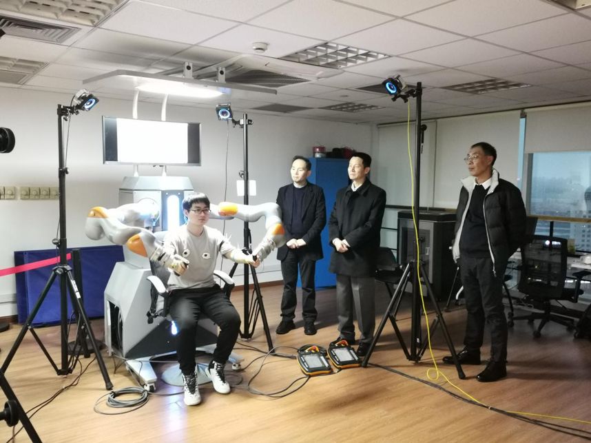 接着,市领导一行参观了研究院正在建设的机器人智能化共性技术平台,该平台用于研究机器人智能感知、智能操作以及云机器人技术服务等。智能化部宋韬详细介绍了双臂机器人、康复机器人等其他机器人设备及操作系统。