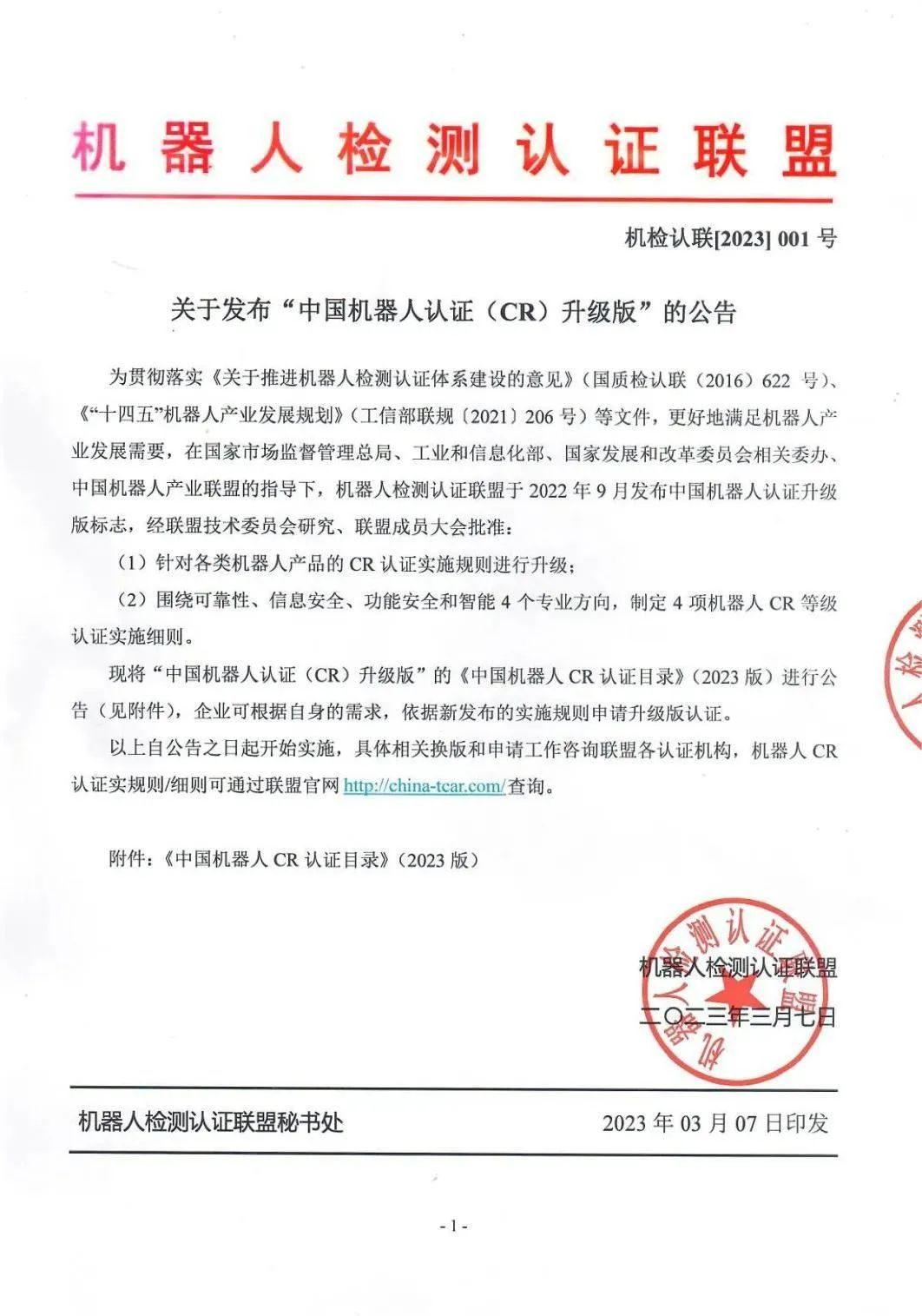 JAKA拿下协作机器人全系列CR认证“001”证书