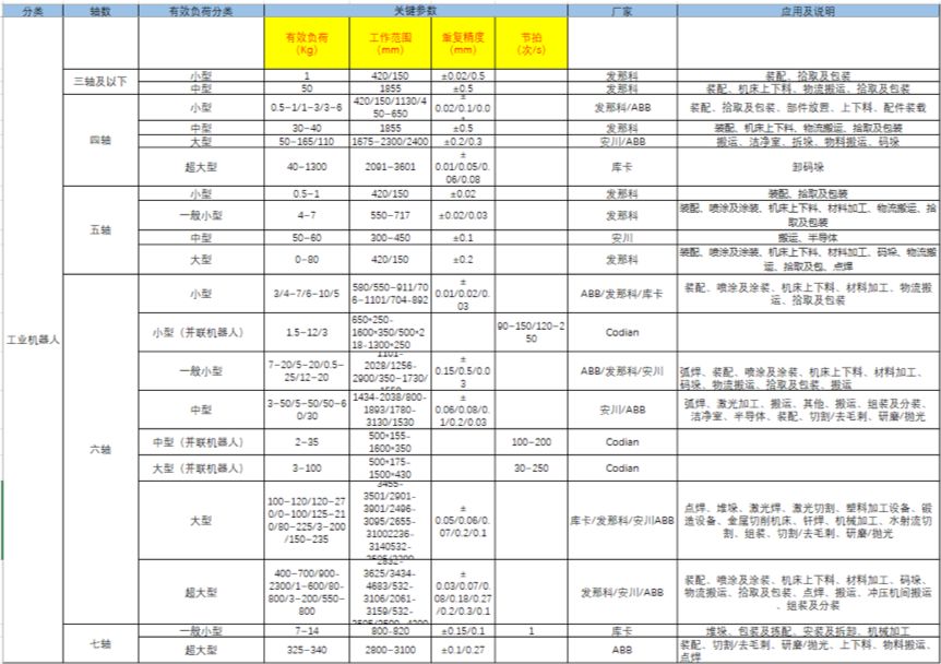 (3)    大型工业机器人的重复精度普遍高于小型和中型工业机器人。