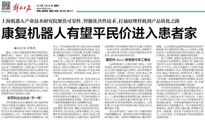 随着上海科创中心建设逐步推进,作为科创中心“四梁八柱”的16个功能型平台也越来越得到大众的关注,解放日报对机器人功能型平台进行了报道,iReGo康复机器人通过研究院可靠性团队的技术支持,通过技术的二次熟化,即将以“平民价”进入脑卒中患者家庭和康复机构,实现产业化。