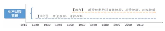 第二个阶段可以称为过程质量控制。当工业化发展到一定程度后,又出现新的问题,质量检验是产品生产出来之后才能对它进行合格不合格的判定,会产生废品,造成质量损失。所以,这个问题就驱动人们思考:能不能在制造过程中进行质量控制,预防不合格品的发生,降低不合格率,这个就是过程质量控制。统计过程控制SPC和六西格玛概念方法就是这个阶段产生的。