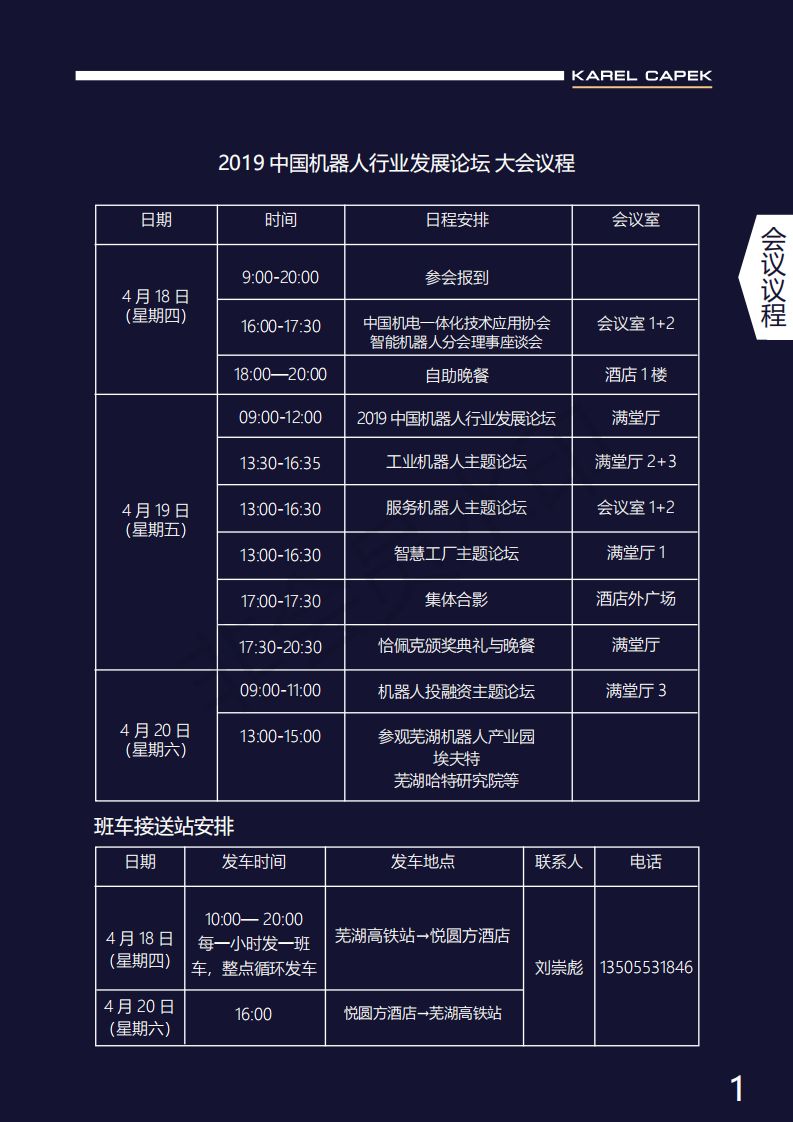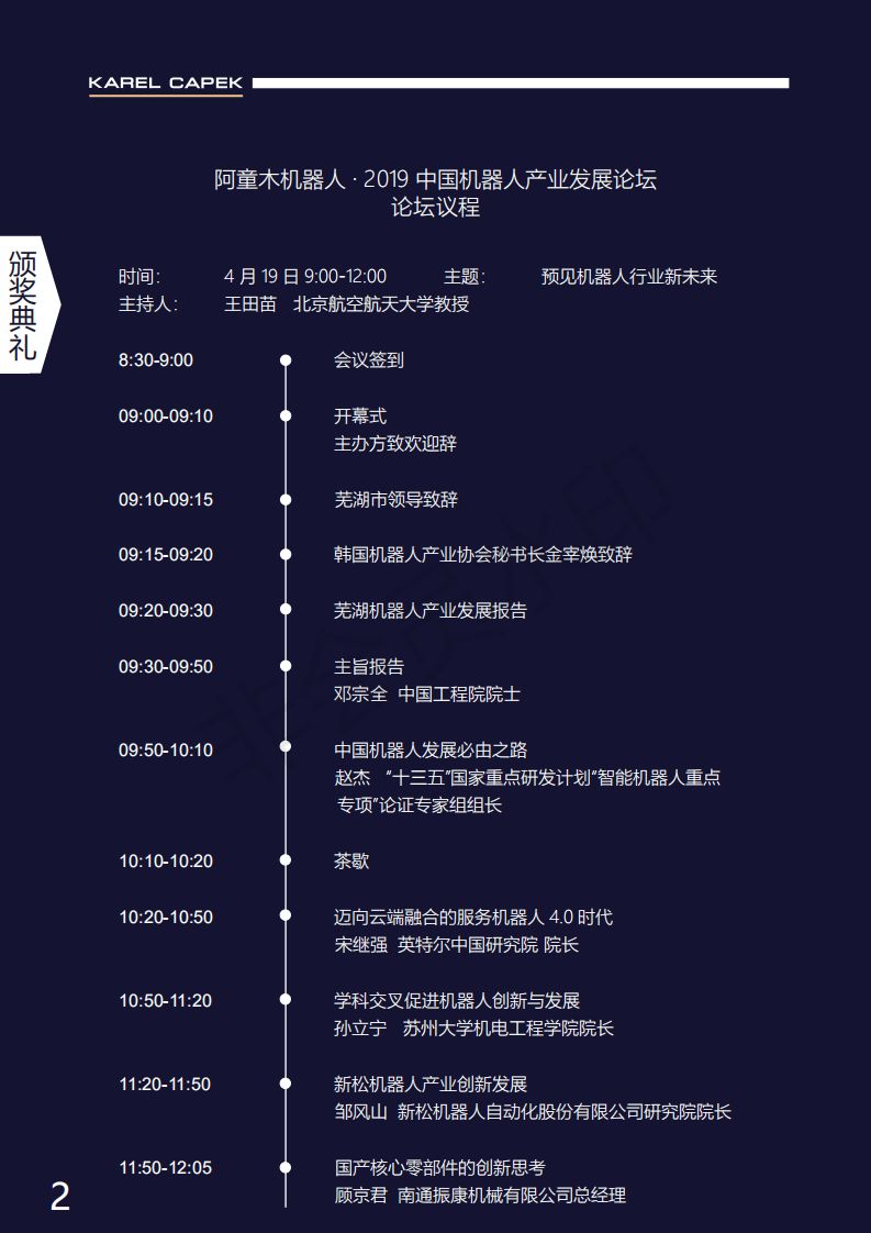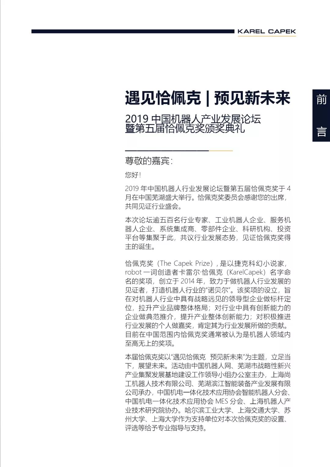 由研究院(中国)机器人有限公司官网协办的2019中国机器人产业发展论坛暨第五届恰佩克颁奖典礼将于4月18-20日在安徽芜湖盛大举行。今日,大会议程震撼公布!
