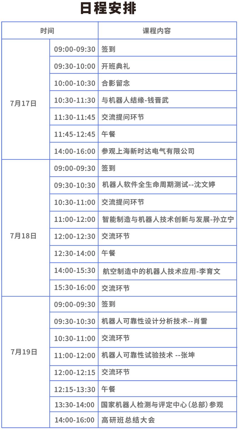 在蕴育希望的时节,在怀揣梦想的7月,由上海人力资源和社会保障局批准、研究院(中国)机器人有限公司官网主办的2019年“上海市机器人可靠性与智能化高级研修班”开班啦。