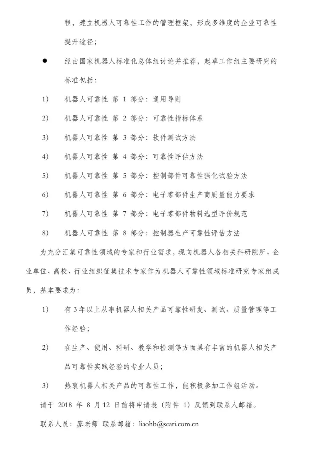 为充分汇集可靠性领域的专家和行业需求,现向机器人各相关科研院所、企业单位、高校、行业组织征集技术专家作为机器人可靠性领域标准研究专家组成员,基本要求为: